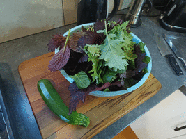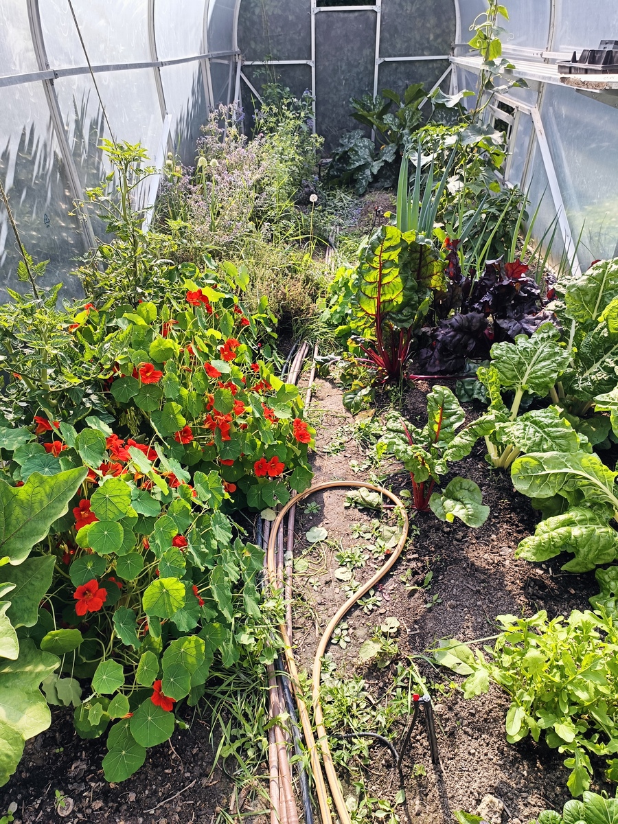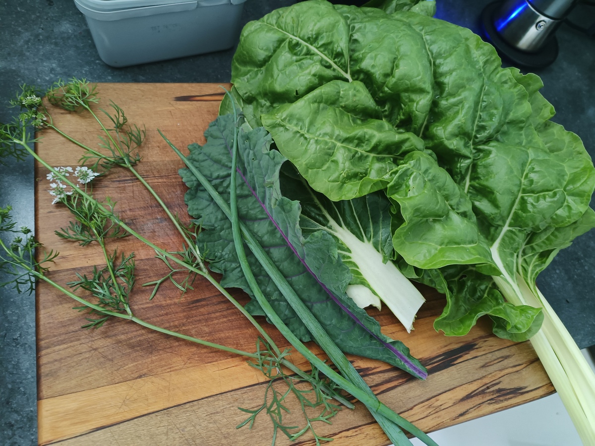 The garden is keeping me well fed. Spuds almost ready... though currently being drowned with a dump of rain.